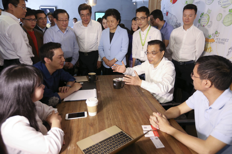2015年5月7日,李克強(qiáng)來到中關(guān)村創(chuàng)業(yè)大街3W咖啡。他坐下來與年輕人邊喝咖啡邊聊創(chuàng)業(yè)。蜂擁圍攏過來的創(chuàng)業(yè)者爭搶著向總理介紹各自的項(xiàng)目。聽到大家各種奇思妙想的創(chuàng)意,總理感嘆道:“這里精彩紛呈,什么想法都有!真正知道社會需求的是大眾,這正是大眾創(chuàng)業(yè)的精髓所在。”(資料圖)