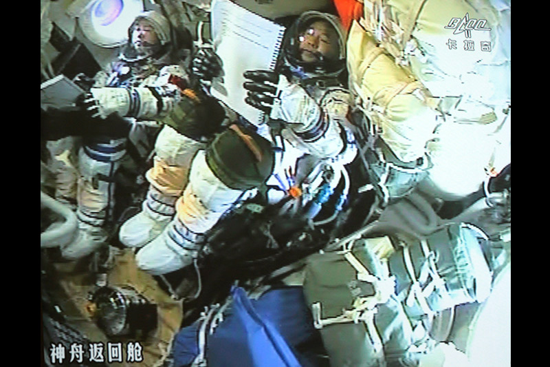 這是2016年11月18日在北京航天飛行控制中心大屏幕拍攝的神舟十一號(hào)飛船返回艙內(nèi)的畫面。2016年11月18日13時(shí)59分,神舟十一號(hào)飛船返回艙在內(nèi)蒙古中部預(yù)定區(qū)域成功著陸,執(zhí)行飛行任務(wù)的航天員景海鵬、陳冬身體狀態(tài)良好,天宮二號(hào)與神舟十一號(hào)載人飛行任務(wù)取得圓滿成功。