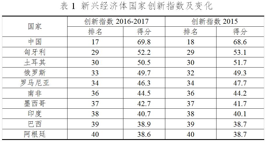 三、新興經(jīng)濟體創(chuàng)新排名整體靠后,金磚國家排名穩(wěn)定