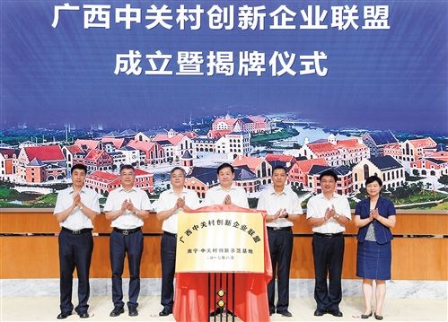 在南寧·中關(guān)村創(chuàng)新示范基地,廣西中關(guān)村創(chuàng)新企業(yè)聯(lián)盟成立暨首批會員揭牌儀式同時舉行。截至今年2月,中關(guān)村企業(yè)累計在廣西設(shè)立子公司221家,投資額總計94億元,分公司達549家。廣西中關(guān)村創(chuàng)新企業(yè)聯(lián)盟的成立對于加快聚集創(chuàng)新要素、構(gòu)建創(chuàng)新發(fā)展生態(tài),發(fā)揮南寧·中關(guān)村創(chuàng)新示范基地的輻射作用和溢出效應(yīng),將起到重要推動作用。