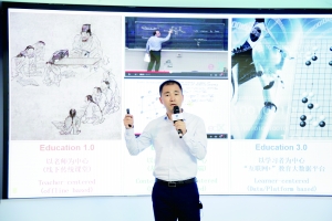 韓國VITRUV人工智能教育項目的創(chuàng)業(yè)團隊成員金賢洙在介紹產(chǎn)品情況。