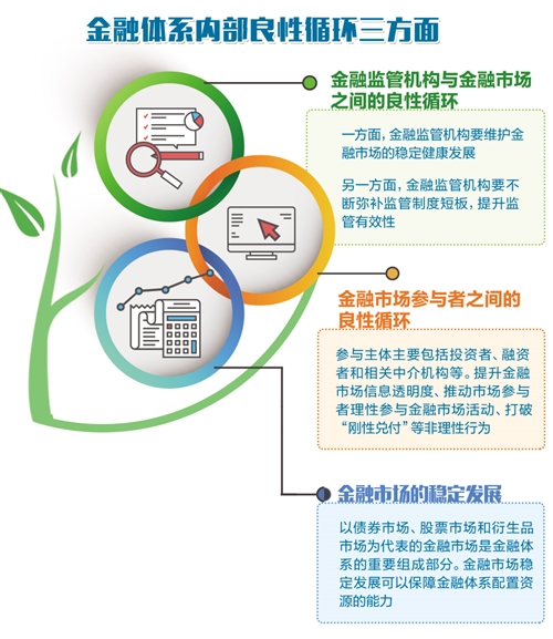 “形成金融體系內(nèi)部良性循環(huán)至少有三方面的含義。”中國人民大學(xué)重陽金融研究院高級(jí)研究員董希淼表示,首先是金融監(jiān)管機(jī)構(gòu)與金融市場之間的良性循環(huán)。一方面,金融監(jiān)管機(jī)構(gòu)要維護(hù)金融市場的穩(wěn)定健康發(fā)展;另一方面,金融監(jiān)管機(jī)構(gòu)要不斷彌補(bǔ)監(jiān)管制度短板,不斷提升監(jiān)管的有效性,推動(dòng)金融市場參與者依法合規(guī)參與金融活動(dòng)。