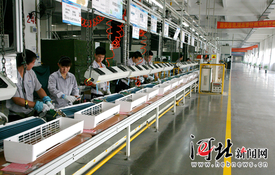 石家莊格力空調(diào)基地位于石家莊高新區(qū),是華北地區(qū)大的專業(yè)化空調(diào)生產(chǎn)基地,家用空調(diào)日產(chǎn)能達(dá)1.3萬套,產(chǎn)品規(guī)格達(dá)20個(gè)品種,可以生產(chǎn)柜機(jī)、分體機(jī)、變頻機(jī),現(xiàn)正在逐步引進(jìn)總部的高端產(chǎn)品。圖為格力總裝分廠生產(chǎn)線。谷曉圓攝