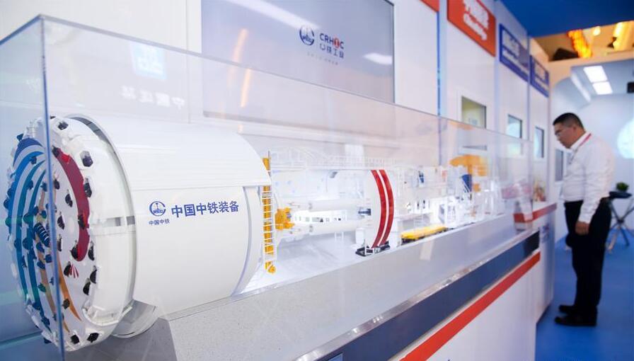 這是中國中鐵股份有限公司在首屆品博會上展出的硬巖掘進(jìn)機(jī)“彩云號”模型(5月10日攝)。新華社記者丁汀攝