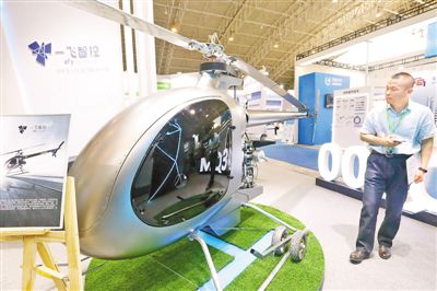 以踐行“軍民融合”、助力“一帶一路”為主題的第十一屆中國國際國防電子展覽會日前在中國國際展覽中心(老館)舉行。圖為展出的新型無人機。陳曉根攝(人民視覺)