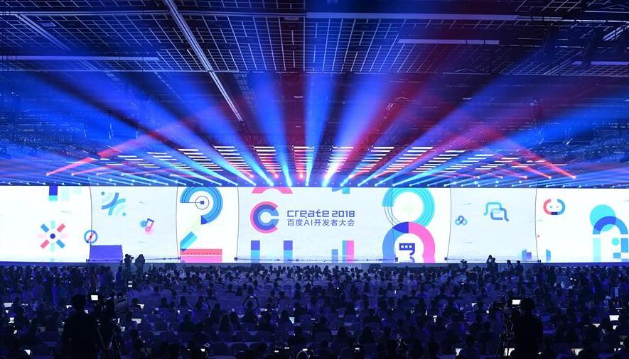 這是百度AI開發(fā)者大會主論壇現(xiàn)場(7月4日攝)。7月4日,百度AI開發(fā)者大會在北京國家會議中心舉行。新華社記者李鑫攝