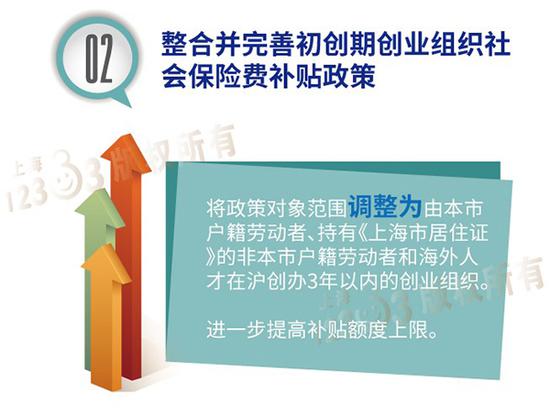第二是整合并完善初創(chuàng)期創(chuàng)業(yè)組織社會(huì)保險(xiǎn)費(fèi)補(bǔ)貼政策。將政策對象范圍調(diào)整為由本市戶籍勞動(dòng)者、持有《上海市居住證》的非本市戶籍勞動(dòng)者和海外人才在滬創(chuàng)辦3年以內(nèi)的創(chuàng)業(yè)組織,進(jìn)一步提高補(bǔ)貼額度上限。