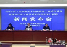 3月20日,河北省政府新聞辦召開新聞發(fā)布會,對《河北省人民政府關(guān)于加快推進(jìn)工業(yè)轉(zhuǎn)型升級建設(shè)現(xiàn)代化工業(yè)體系的指導(dǎo)意見》進(jìn)行解讀。圖為發(fā)布會現(xiàn)場。記者杜昱輝攝 河北新聞網(wǎng)3月20日訊