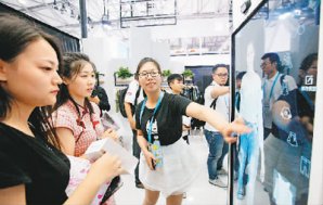 在上海2017年亞洲消費電子展上,參觀者在體驗一款可與電商平臺網絡連接實現試穿下單一體化的智能穿衣鏡。新華社記者方喆攝 去年5月,國家批準建設了首批28家大眾創(chuàng)業(yè)萬眾創(chuàng)新示范基地。