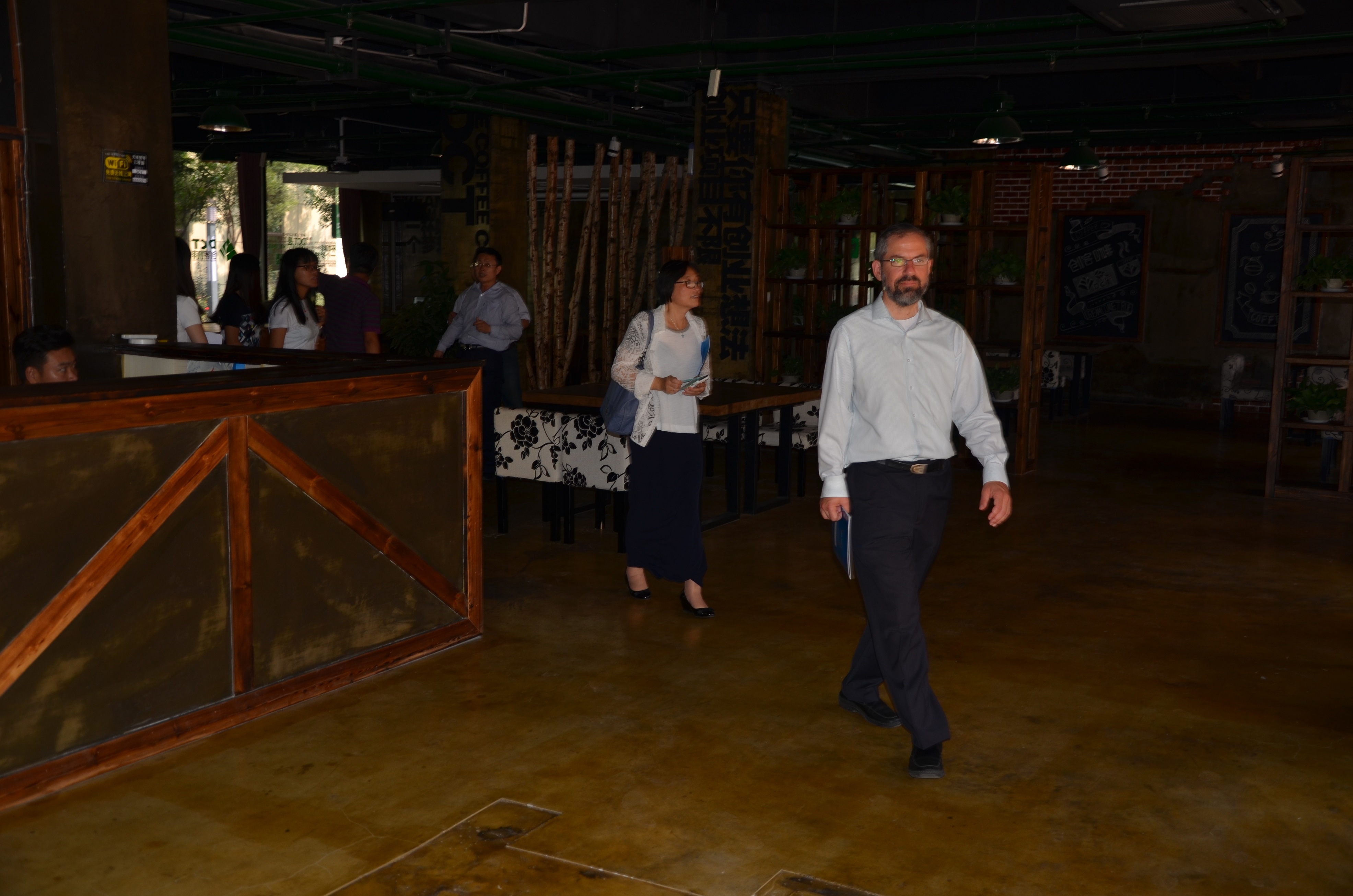 客商一行人來到園區(qū)“DCT創(chuàng)客空間”,邯鄲高科負(fù)責(zé)人向他們介紹了創(chuàng)客咖啡的結(jié)構(gòu)設(shè)計理念,客商對“創(chuàng)客咖啡”的建造格局和發(fā)展理念表示贊賞,并學(xué)習(xí)借鑒中小企業(yè)加速器的優(yōu)秀創(chuàng)意產(chǎn)業(yè),促進自身產(chǎn)業(yè)的加快發(fā)展。