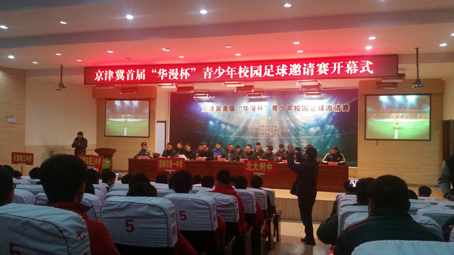 開幕式在邯鄲市中學的中道報告廳舉行,開幕式上邯鄲市中學校長高玉峰代表東道主致辭,歡迎各地朋友參加盛會,“華漫杯”不僅是場足球賽事,也是一次文化交流盛舉,既是足球育人的落實又是足球文化的傳遞,“華漫杯”青少年校園足球賽,不僅推動青少年足球發(fā)展,也推動中國足球事業(yè)發(fā)展和中國足球文化傳播,同時呼吁更多社會力量參與進來。