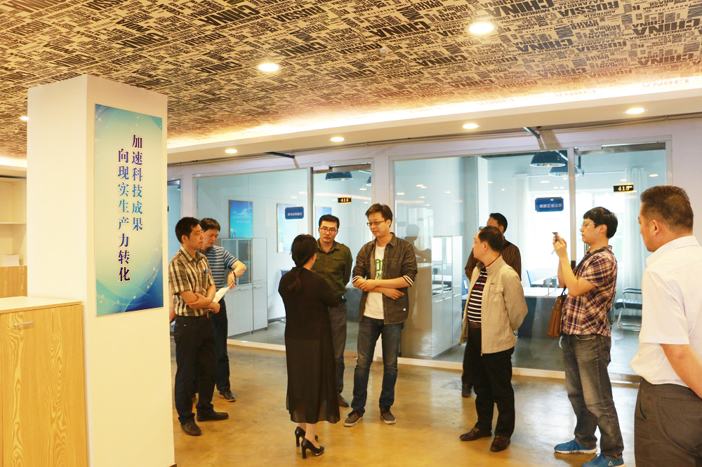 隨后,一行人又來到DCT創(chuàng)客空間四層參觀——邯鄲市技術(shù)交易中心的駐地。王江濤向大家介紹了邯鄲市技術(shù)交易中心所在的意義:邯鄲高科將依托邯鄲市技術(shù)交易中心科技信息平臺建設(shè)與運(yùn)營的經(jīng)驗(yàn),利用自身的優(yōu)勢,為園區(qū)企業(yè)及創(chuàng)客們提供更多更優(yōu)質(zhì)的“軟服務(wù)”。 通過信息互聯(lián)互通、資源開放共享、市場聯(lián)合拓展的協(xié)同創(chuàng)新機(jī)制,挖掘企業(yè)需求,整合科技成果資源,促進(jìn)科技資源供需對接,推動(dòng)技術(shù)轉(zhuǎn)移與成果轉(zhuǎn)化工作,促進(jìn)產(chǎn)業(yè)升級與產(chǎn)業(yè)轉(zhuǎn)型;通過完善的創(chuàng)新服務(wù)網(wǎng)絡(luò),集成利用科技中介服務(wù)資源,實(shí)現(xiàn)技術(shù)轉(zhuǎn)移服務(wù)一體化,提自身的公共服務(wù)水平??疾旖M對這里的配套服務(wù)和設(shè)施十分滿意,并表示對常德市的眾創(chuàng)空間將有很好的借鑒作用。
