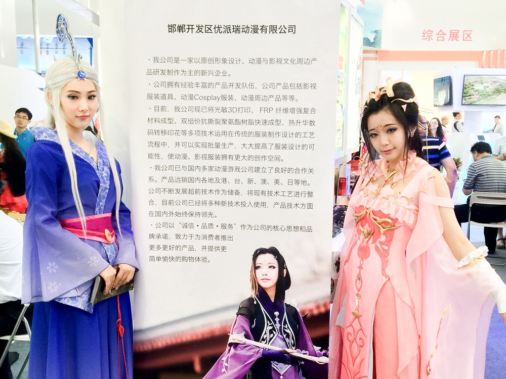 本次展會期間,優(yōu)派瑞展出精美的動漫服飾,將新的技術(shù)成果和嚴(yán)謹(jǐn)?shù)墓ぷ骼砟钤谡箙^(qū)向中外參展人員進(jìn)行了集中展示,完美的呈現(xiàn)了傳統(tǒng)手工藝和動漫文化產(chǎn)品的創(chuàng)新高效結(jié)合。乘著“十三五”文化產(chǎn)業(yè)將成為國民支柱性產(chǎn)業(yè)的東風(fēng),優(yōu)派瑞將依托“文化+科技+金融”的服務(wù)平臺,在“文化引領(lǐng)城市轉(zhuǎn)型發(fā)展”的浪潮中,更好更多的將動漫文化化零為整,作為公眾文化向大眾推出,更好的推廣普及動漫文化,為社會創(chuàng)造更大的價(jià)值。